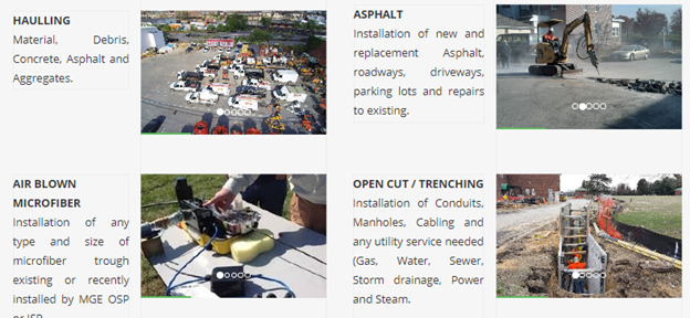 MGE Inc. is also experienced in meeting many special site requirements and will accommodate your special project needs. Every service line is completed with full restoration capabilities including sod, soil, asphalt and concrete. We are conveniently located in Baltimore city and service the Baltimore and surrounding areas. Please allow MGE Inc. to bid on your next trenching and cabling project and we commit to provide the highest quality and on-time project at the lowest possible cost.